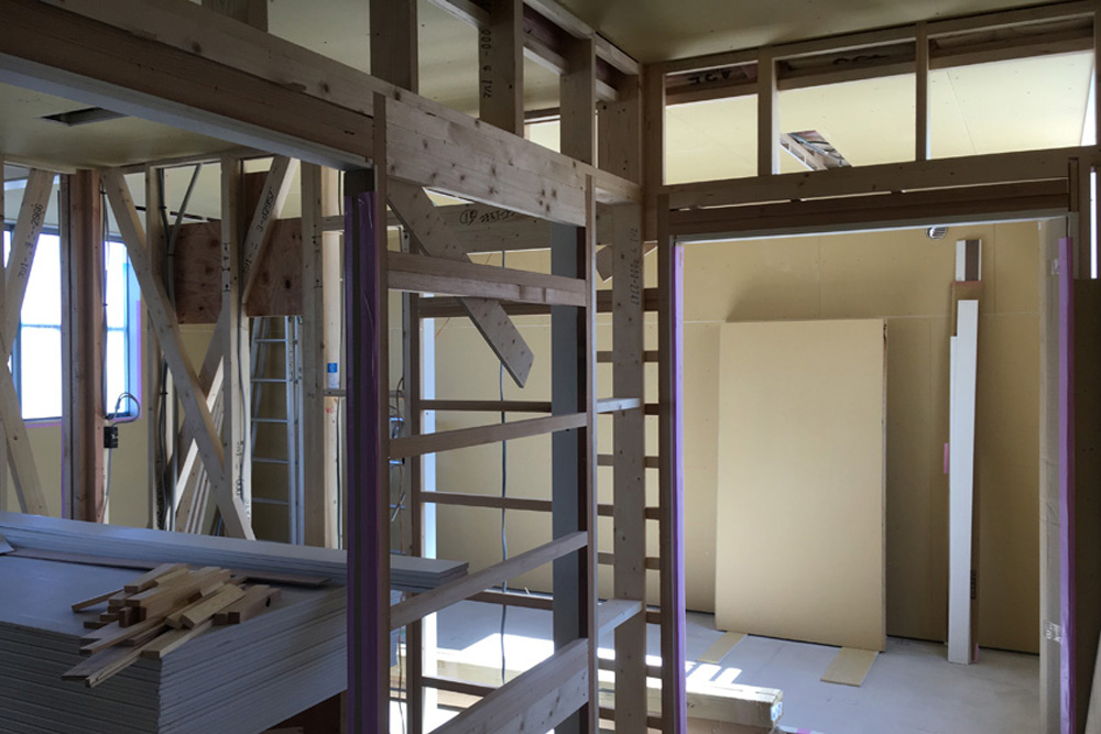 内部はボード張り工事が始まっており、大工工事も来週には完了予定です。