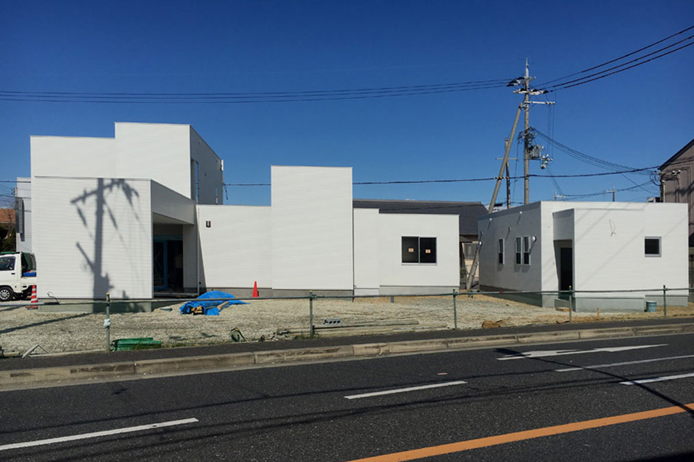 一方、調剤薬局のほうは建物の工事はすべて完了し、外構工事が始まっています。