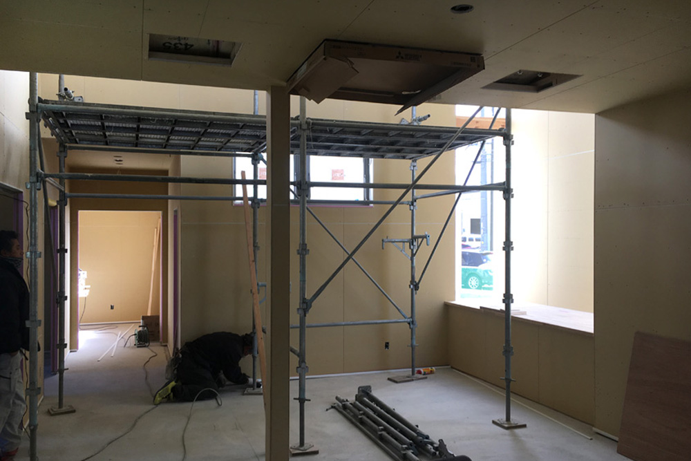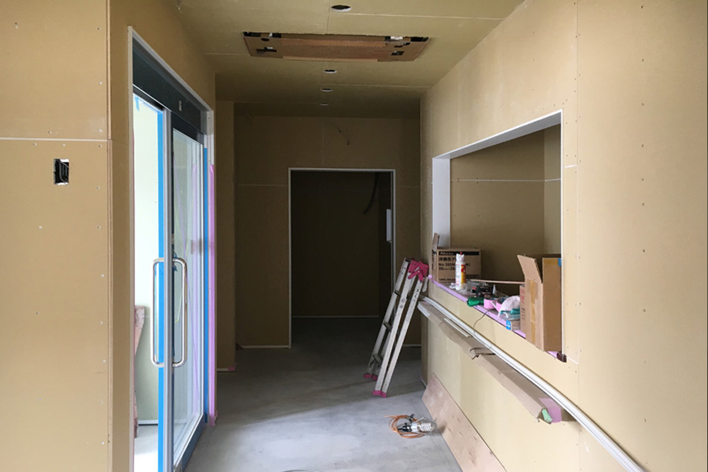 内部はボード張り等の大工工事も完了し、内装工事を待つ状態です。