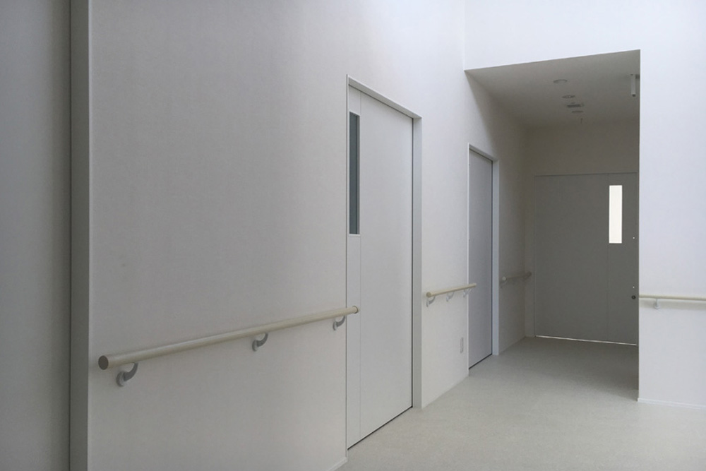 クリニック内装は、内部建具も取付き、床材も貼り終えています。